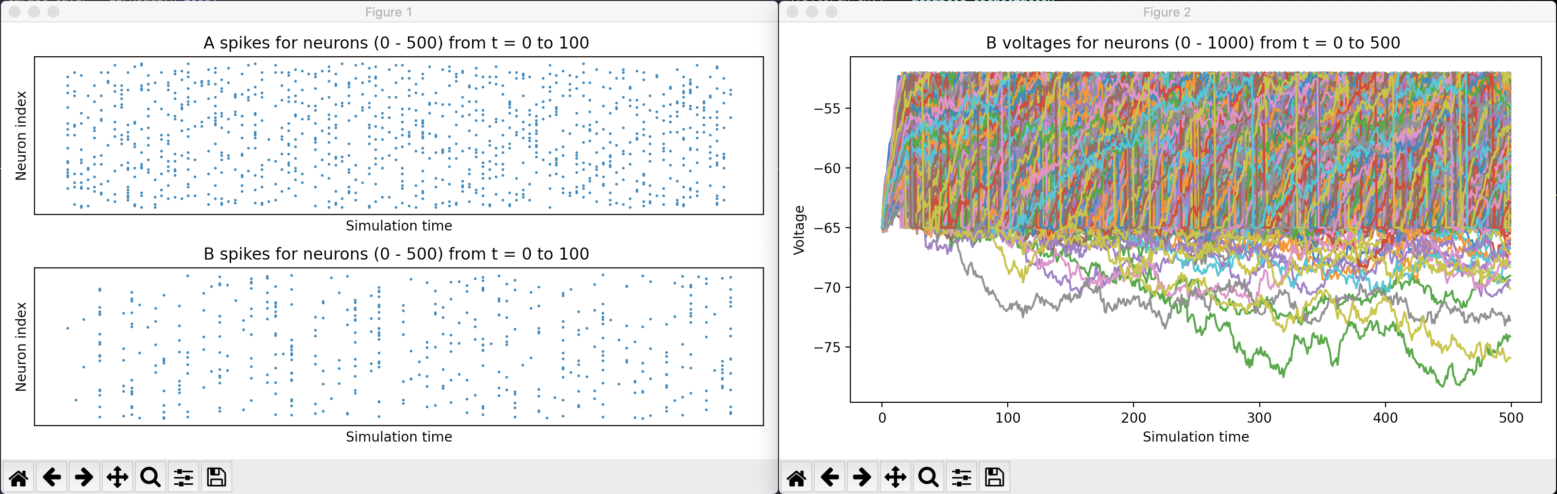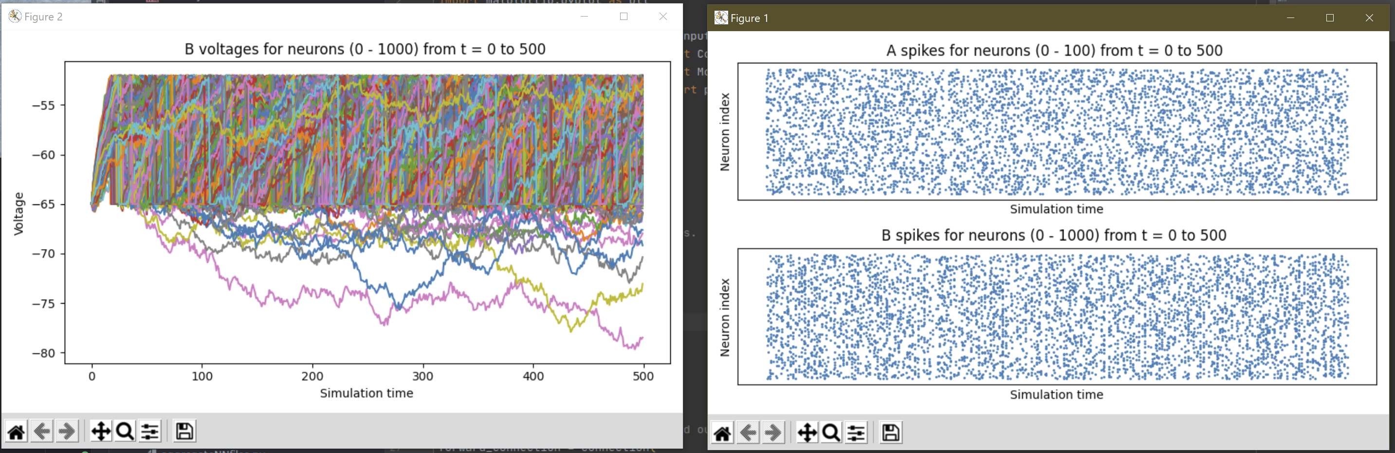 Indices exchange in plot_spikes function, so that time varies from 0 to time param, and n_neurons vary from 0 to the number of neurons at each layer.