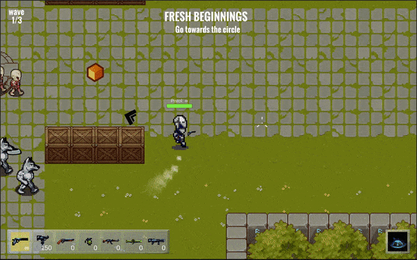 - The player starts the game as he spawns with a pistol with infinite ammo to kill monsters that spawn randomly.
