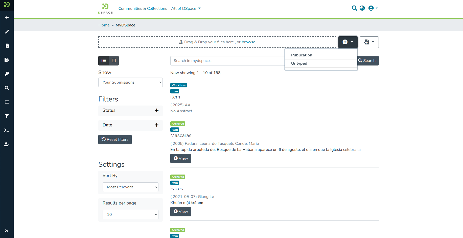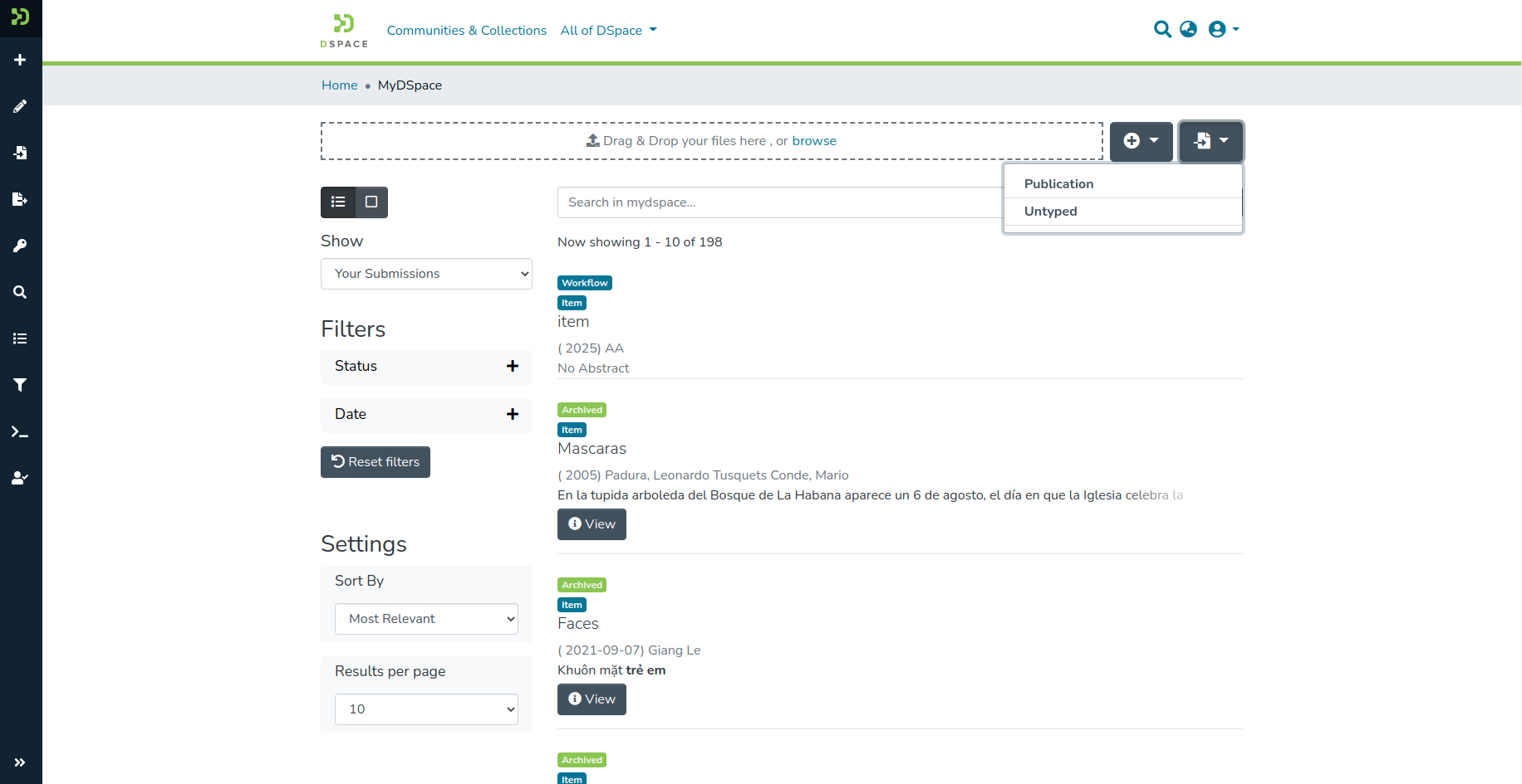 @atarix83 : As promised in this week's meeting, I've retested today and am still seeing the same issues that I previously reported, including the lack of the dropdowns on the MyDSpace page.