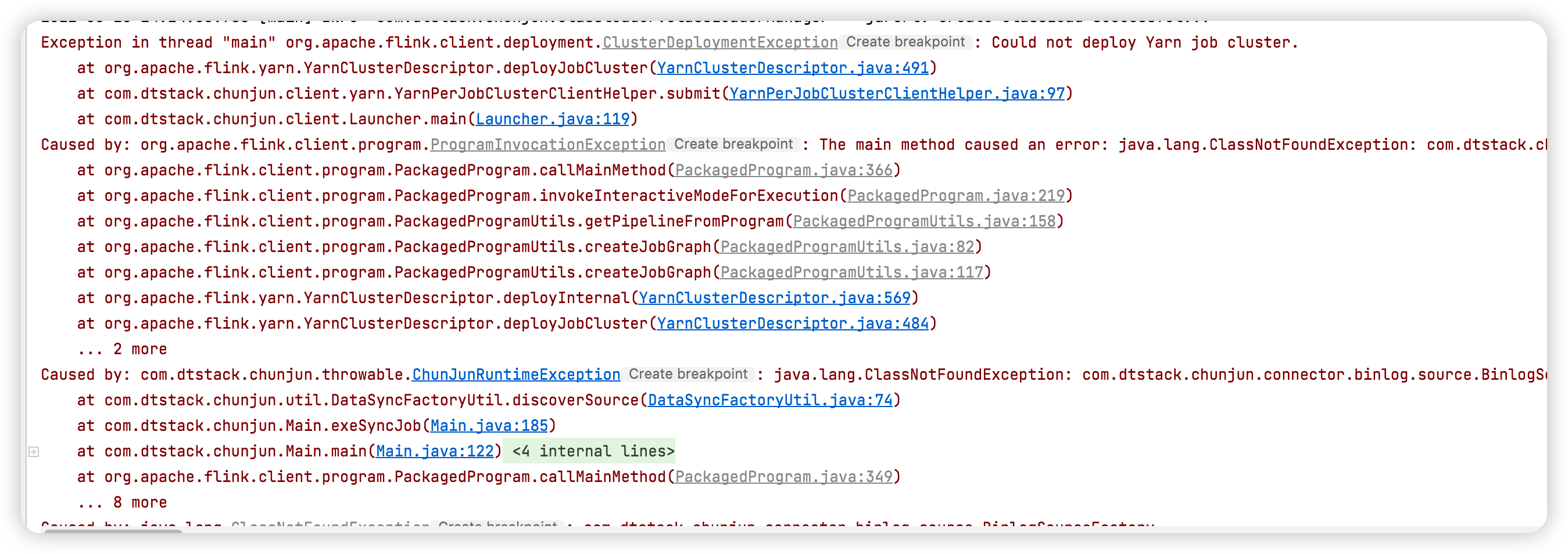 **Describe the bug** Use 'chunjunDistDir' replace 'flinkxDistDir', then task failed with ClassNotFoundException. <img width="1349" alt="image" src="https://user-images.githubusercontent.com/35768015/169467555-4c590bf9-6e17-4ecd-ba28-6e9b13a6a402.png"> <img width="723" alt="image" src="https://user-images.githubusercontent.com/35768015/169467594-2a4259b7-065d-4b12-b36d-f19131e1edab.png">