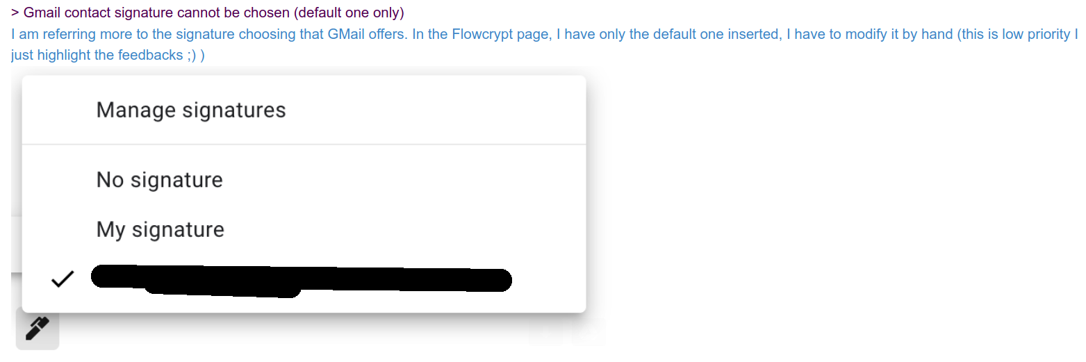 It seems that when you set several signatures on Gmail, and try to send a message, it will let you choose one. We could investigate what we get back from Gmail API, maybe we could offer something similar. Low-pri for now.