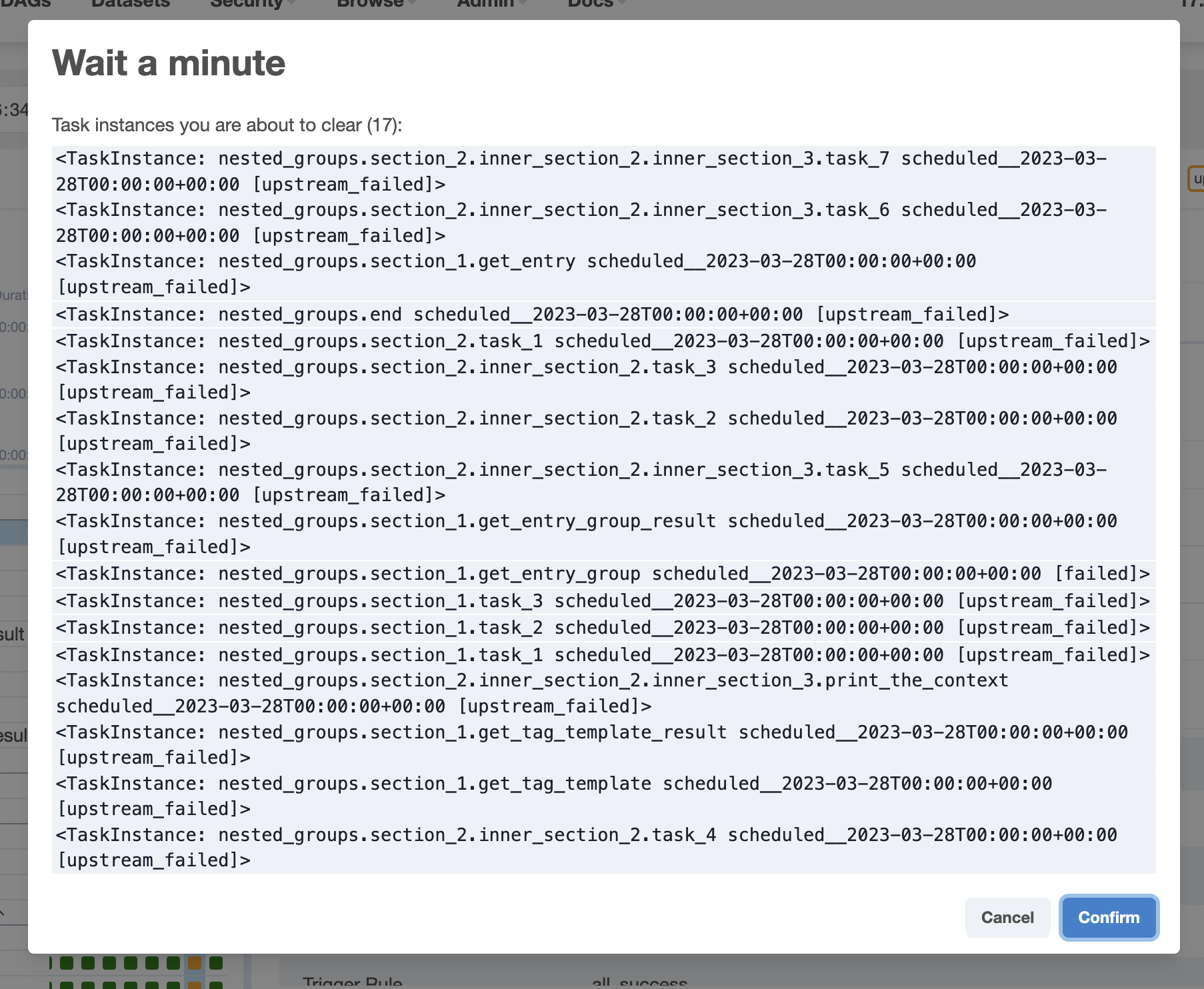 I think you are right @uranusjr. I am opening a follow up PR to display a table there for the task detail, I feel like it is really hard to see the tasks in the current code block. Also I just noticed a small thing, buttons are Also weirdly for outlined button, vertical align seems off. |