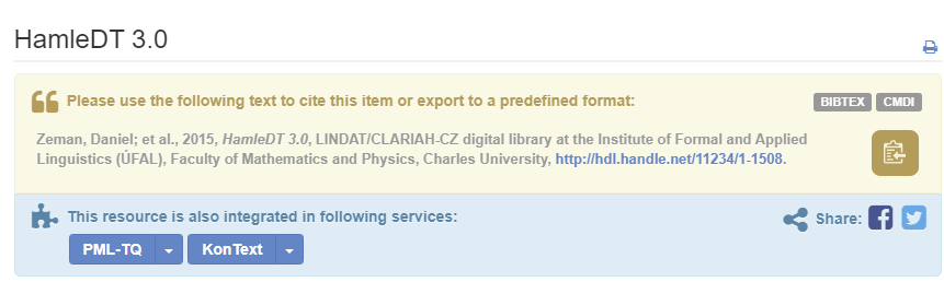 ds-item-citationthat will display citation content. This component should be rendered in the item view. - Add buttons to share the data on the social media (FB, Twitter).