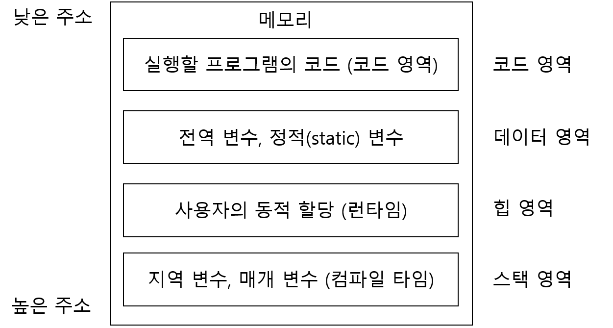 - 데이터 영역은 프로그램의 시작과 동시에 할당되며, 프로그램이 종료되면 소멸한다.