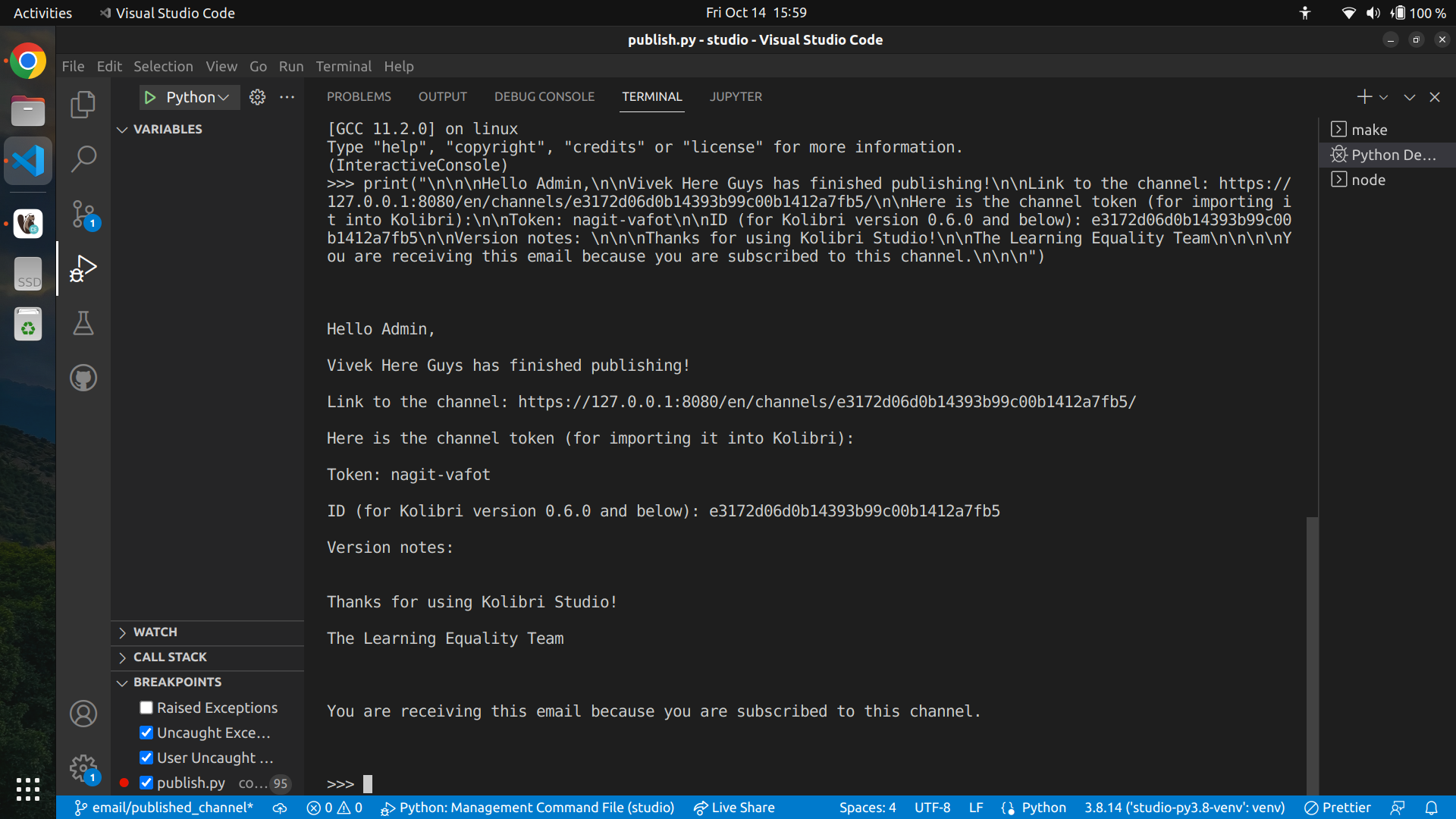publish_channelfunction from the terminal via devshell to look at the email in stdout. Does the email output looks correct?References