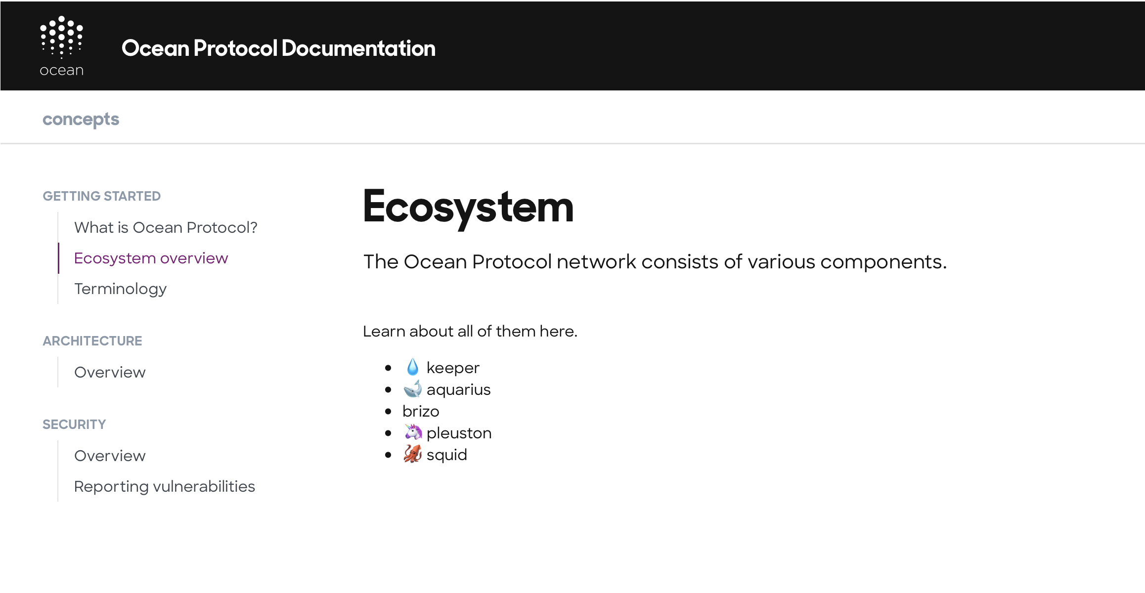 Implement basic nav concept with sidebar each section's content. PR just adds functionality and basic styling, design is not final. We can start with that but depending on the length of setup guides & tutorials, it might make sense replacing sidebar with the dynamic table of contents for each article.