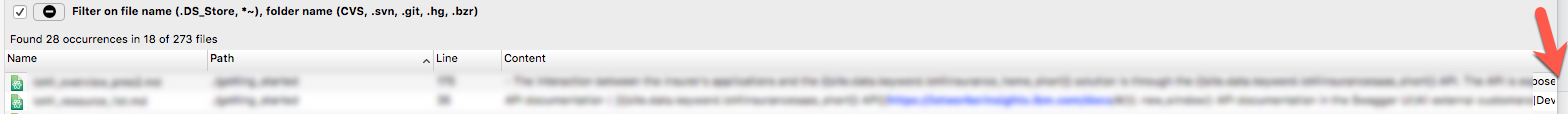 Sometimes the search string result (in blue) is beyond what will fit onscreen, and I can't see the result in context, without opening the file itself.