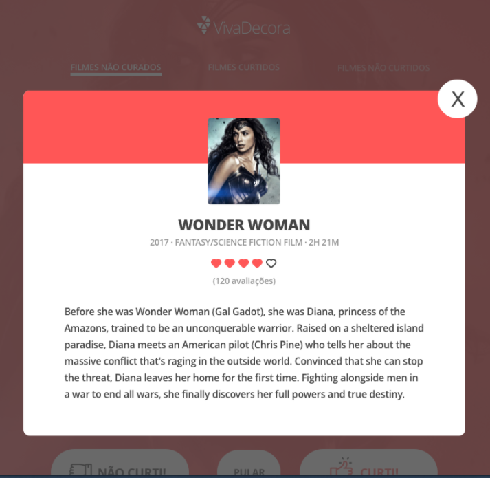 - Um botão "Não curti!" que adiciona o filme na lista de "Filmes não curtidos";